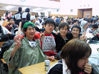 100キロハイク無事完歩 今年は二日目が朝からずっと雨ということで大変でした 休憩所は雨でびしょびしょ。(写真左) でも、なんとか閉会式に間に合いました(写真真ん中) (ちなみに閉会式に出られるのは全参加者の3割といわれています) 小学校の先生をやっていて、翌日運動会がある教研M2のNさん。 去年に引き続き二度目の参加の社研M2のYさん。去年は閉会式途中で着いたんですが、今年はなんと10位で大隈講堂前に着いたとのこと。余裕の閉会式参加です 文研を卒業して今年で四回目参加のSさん。 そして