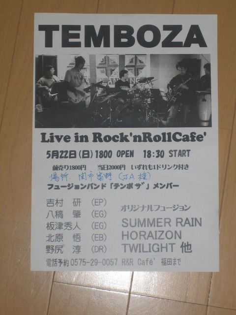 テンボ.セッションで馴染みのメンバーです。 ここのお店では「高度な演奏」に入ります・・・ http://rocknrollcafe.jp/cat/schedule チケットはこのお店でも私の方でもどちらで採ってもokです。 (直接採るか、何枚希望かお書きください・・・) 店内は20ん年前のポパイ、ホットドッグ.プレスの様な・・・・ 場所が解らない人はテンボ近くの大垣共立にpm5・30まで・・
