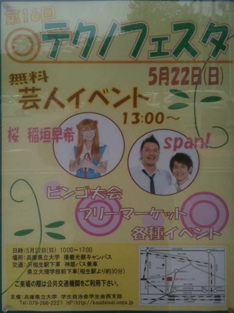 テクノに貼ってあるポスターによると、 22日に兵庫県立大学理学部に来るそうです。 私は所用があって行けませんが〜