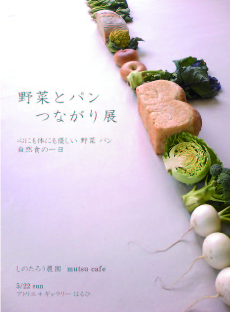 5月22日の日曜日、 神戸三宮すぐの春日野道の古民家カフェで 農薬を使わない野菜と自家製天然酵母パンの個展のような、 「野菜パンつながり展」を開催します。 野菜とパンを販売するだけでなく、じっくりと見ていただけるように オブジェのように飾り、 育てられている土壌、人、 ゆっくりと見ていただける展示販売をします。 それに伴いフードユニットun lienによる、 しのたろう農園とmutsu cafeのパンを使った ベジランチとベジスイーツの1day cafeを開催します。 どうぞお近くに通りかがられた方は除いてくださいませ。 ランチ