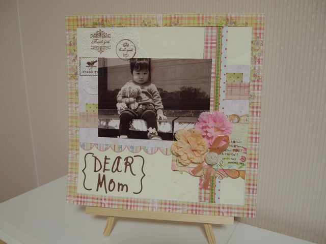 みなさんこんにちは!! ここんとこ雨続きですね 雨でも「公園行く??」と聞いてくる娘を説得するのに大変な毎日です。 来週はお天気よくなってくることを願ってホームクラスを開催します!! 今月は12インチを2つ作る講習にしたいと思います!! 1つはこどもの日もあったということで、ポップなレイアウトに仕上げました!! こどもの日は端午の節句でもありますので、男の子のお写真にも合わせやすいペーパーを使いました。 もちろん女の子にもお勧めです!!! ミストを使いますので体験したことない方はぜひ♪ もう1
