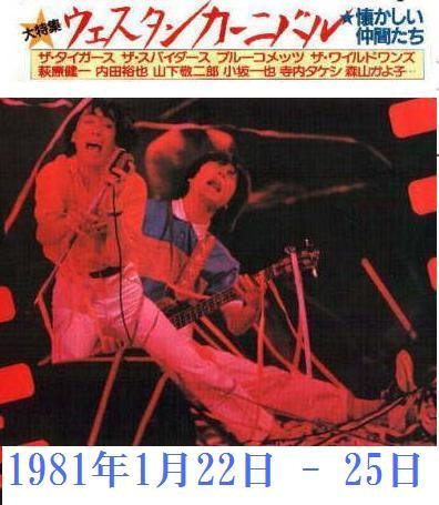 \(^^:;)定員に達したため20日で締め切りました。 GS・沢田研二35共同企画 最後のウェスタンカーニバルにロカビリーからGSまで勢揃い。 幻の未公開映像もありの圧巻5時間 フリータイムを利用して5時間映写会と1時間GSカラオケしましょう 提供□ひろみつ 企画・リスト作成□JOWAJOWA 開催委員?□樹里☆彡MOE ちょっと費用がかわってしまいました。フリータイムは日曜ないそうです。交渉の末 特例でしただけることになったので6時間飲み放題つきで3000円でお願いします。 食事は各自おしはらいになるのでおつりないようお願い