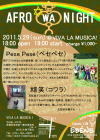 管理人さま ペセペセのライブ告知させていただきます。 *** 東日本大震災以来、自分たちにできることを通して、少しでも復興のお役に立ちたいと、ペセペセメンバーも東日本大震災への復興支援イベントに積極的に参加させてもらっているこの頃です。 さて、Djembe工房EBENE主催の「アフロ和ナイト」シリーズに、ペセペセが登場します! ペセペセのライブ@京都、お久しぶりのみなさまにも、もちろんはじめてのお客さまにも、たっぷり楽しんでいただけるよう、音づくりに励んでいます! どうぞみなさん、遊びに来てくださいませ〜☆