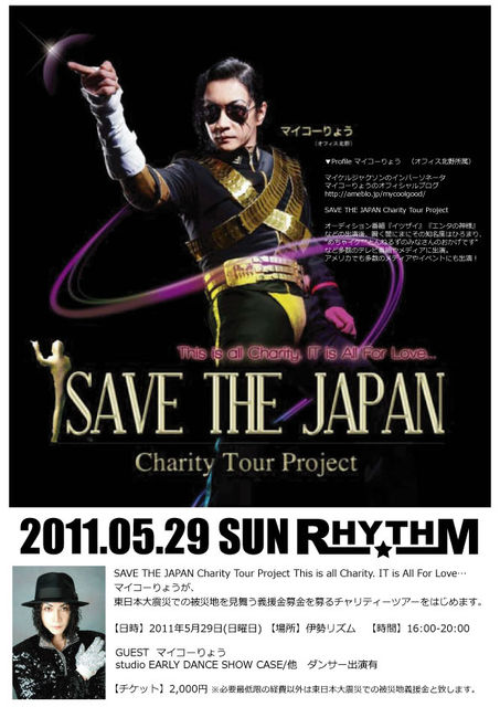 マイコーりょうが、東日本大震災での被災地を見舞う義援金募金を募るチャリティーツアーをはじめます。