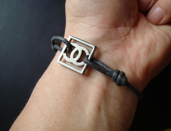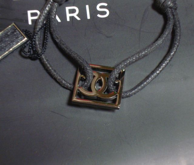 シャネル スポーツラインブレスレット 2005年購入の物ですが未使用品です。 ショーケースの中に展示していましたのでピカピカの新品ではありませんが 撮影の為に私の手首に付けた以外は使用していません。 【商品の説明】 シルバーのスクェアプレートにココマークが型抜きされています。 本体は黒い編みひもタイプのブレスレット。 サイズはヒモ部分をスライドする簡単調節で男女兼用です。 細い〜太い手首にも調節出来ます。 *ブレスレットに飽きたりヒモ部分が古くなったら、 手持ちの革ひもやチェーンを通せばネックレスの