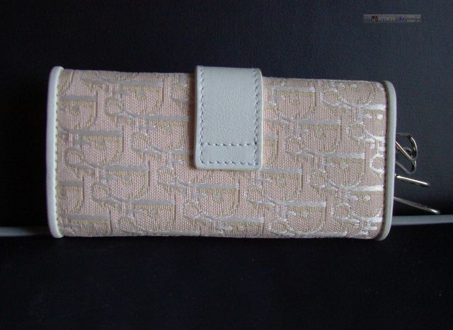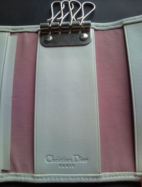 仕事での展示商品の整理をしています。 今度はディオールなんですが、あげる人がいませんのでどなたかお引き取りねがいます。 【商品】 クリスチャンディオール 織り布素材4連キーケース 未使用品 大きさ: W10.5cm×H 5cm 素材:ディオールのロゴを織りこんだ布製 色:淡いピンク 2006年頃に購入店は失念してしまいましたが私が都内の直営店にて (20000円弱程度だったと記憶してます)購入しております。 【難あり部分】 ショーケースの蛍光灯でピンク色が薄くなっております。 バックル側とサイドに展示中に蛍