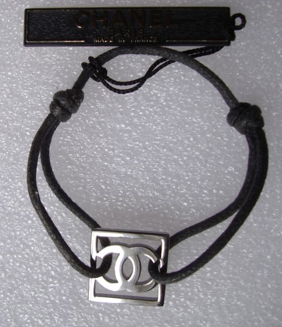 シャネル スポーツラインブレスレット 2005年購入の物ですが未使用品です。 ショーケースの中に展示していましたのでピカピカの新品ではありませんが 撮影の為に私の手首に付けた以外は使用していません。 【商品の説明】 シルバーのスクェアプレートにココマークが型抜きされています。 本体は黒い編みひもタイプのブレスレット。 サイズはヒモ部分をスライドする簡単調節で男女兼用です。 細い〜太い手首にも調節出来ます。 *ブレスレットに飽きたりヒモ部分が古くなったら、 手持ちの革ひもやチェーンを通せばネックレスの