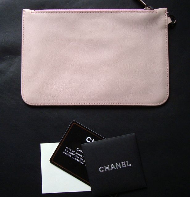 仕事での展示商品の整理をしています。 またシャネルなんですが、あげる人がいませんのでどなたかお引き取りねがいます。 【商品】 CHANEL シャネル カーフ素材ポーチ 未使用品 大きさ: W16.5cm×H10.5cm マチがありませんので収納量は少ないです。 素材: 柔らかいカーフ 色:淡いピンク Dリングが付いているのでバッグにチェーンで取り付けて便利に使えそうです。 2006年頃に二子玉川のシャネル直営店にて私が(20000円程度だったと記憶してます)購入しておりますのでギャランティーカード(シリアル付き)が付属します。 【