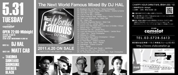 5/31(火) 本日CAMELOTゲスト案内!!GUEST DJ HAL !! GUEST LIVE MATT CAB !! DRESS CODE Spotlight『HIPHOP,R&B PARTY』@ 渋谷Camelot