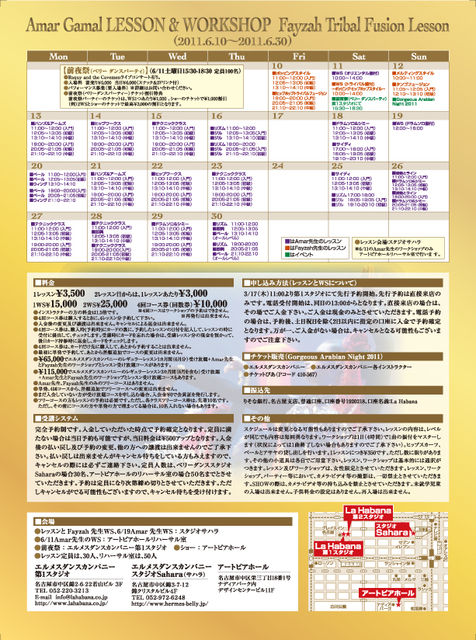 6月12日(日)に世界的に人気のベリーダンサー、Amar Gamal 先生およびFayzah先生が今年もアメリカから来日してくださり、去年に引き続き、2011年も開催することになりました!!