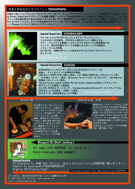 ADV / DOOR : \1500 / \2000 (共にドリンク別)