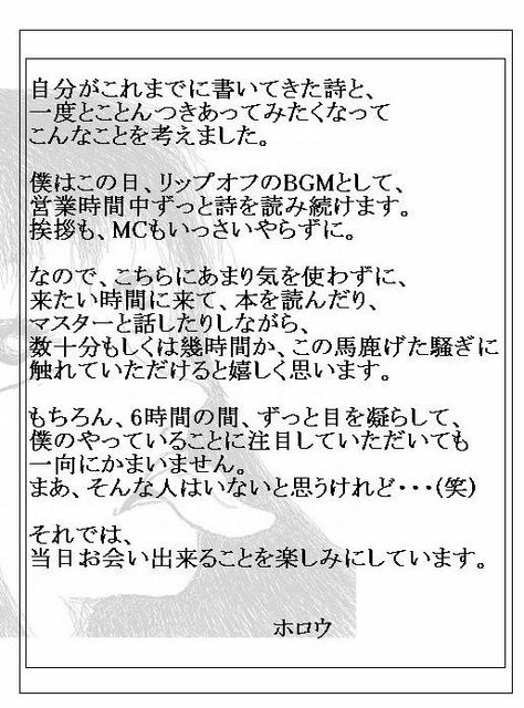 管理人さま、告知失礼します。不適切でしたら削除お願い致します。