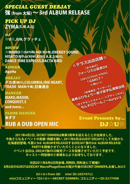 SECRET DINNER〜秘密の晩餐会☆強(from大阪)3rd ALBUM RELEASE PARTY★★