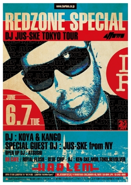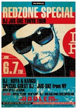 今夜6/7(火)に渋谷ハーレム+BX CAFEにてレジデントDJ KANGO & KOYAで毎週火曜開催の「RED ZONE -DJ JUS-SKE TOKYO TOUR SPECIAL- 」が開催されます
