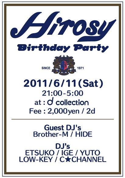 昔からお世話になっている両国のd-collection(旧:Philadelphia Motor Town)にて、店長のHIROSHI君他6月生まれの方々も交えて6/11(Sat)に開催されるパーティにゲストDJでお呼ばれしていますウインクるんるん DJsも豪華絢爛、あの面子が勢揃いぴかぴか(新しい) お時間ある方は是非遊びにおいでくださいネ目がハートexclamation ×2 時計DATE:6/11(Sat) 21:00〜5:00 ATMPLACE:d collection@RYOUGOKU TOKYO ドル袋FEE:¥2,000(2d) ヘッドフォンDJs:ETSUKO / IGE / YUTO / C☆CHANNEL / LOW-KEY Guest DJs:HIDE / Brother-M るんるんSOUND:R&B、New Jack