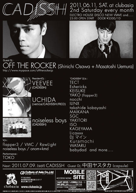 次回のゲストはOFF THE ROCKER(Shinichi Osawa + Masatoshi Uemura)です!!!!!!!!今では国内エレクトロ界の先駆的存在となったOFF THE ROCKER。1曲づつ交互にスピンするBACK TO BACKによるDJプレイは必見です!!!!!!!!!
