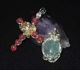 三日月1dayスタディ ワイヤーワーク三日月 〜ワイヤーを使用した天然石アクセサリー制作の1日体験レッスン★〜 「占いの部屋あんじゅひめ」でも取り扱っています、ワイヤーワークによるアクセサリーをご自身でも楽しみながらお作り頂く1日体験講座です。 ワイヤーワークというと、少し難しい印象を持たれる方もいらっしゃるかも知れませんが、ちょっとしたコツをおぼえるだけで、お好きな石やビーズを素敵なアクセサリーやチャームに変身させることが可能です。 初めてワイヤーに触れる…というような方でも簡単に作れるものから入りますの