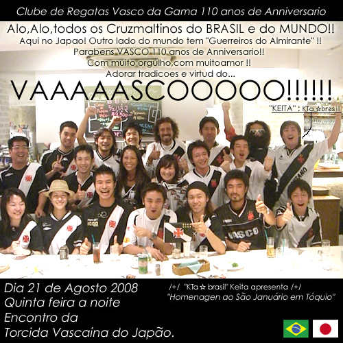 /+/ C.R.Vasco da Gama/+/ オフィシャルプロジェクト http://www.crvascodagama.com/ Rio de Janeiroの名門クラブ、C.R.Vasco da Gama。ブラジル代表や、VASCOのプロジェクトに長年参加し現在スタッフ/上級会員/応援団団員のKTa☆brasilが日本でのVASCO TV撮影ロケイベントを開催します。 2011年も現地Rio de Janeiroにてその一員として活動、帰国後もJ-WAVEや月刊LATINA5月号でも3ページに渡り、VASCOとのプロジェクトをご紹介。 >>>今度は日本でVASCO TVのロケ、みんなで楽しくやりたいと思います♬ 獅子座参加・お申し