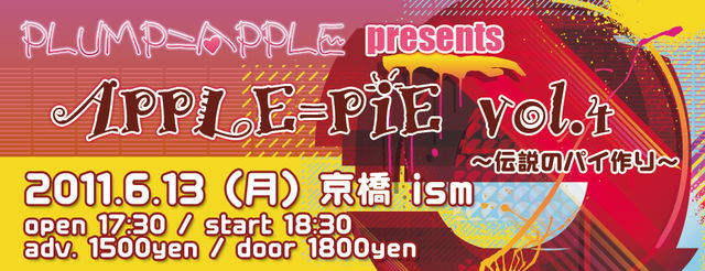 久し振りのライブです!新曲をひっさげて(予定)参戦します!! 是非是非お越し下さい☆ 6月13日(月) PLUMP=APPLE presents APPLE=PIE Vol.4 〜伝説のパイ作り〜 @京橋ism (大阪市都島区片町2-4-5京橋駅前ビル3F) http://www.ism-z.com/ OPEN 17:30 / START 18:00 前売り:¥1,500 当日:¥1,800 (1ドリンク別途オーダー制) 《出演》 18:30〜18:50 *mariko* 18:55〜19:15 池田あかり 19:15〜19:25 コーナー企画【1】 19:25〜19:45 にょロボてぃくす (※) 19:45〜19:55 コーナー企画【2】 19:55〜20:15 松本絢佳 20:15〜