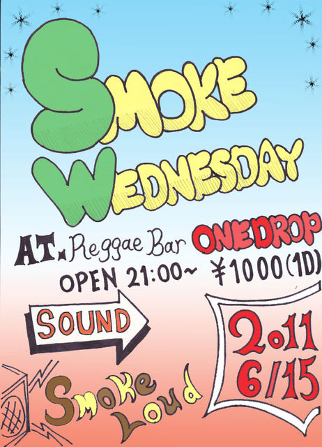 お待たせいたしました、平日のHOTな水曜日SMOKE WEDNESDAYがreggae bar One Dropにて復活致します!