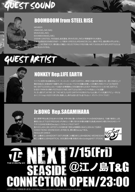 また、SOUNDには毎月第1木曜日に横浜ex@Bodegaにて【MidnightQuake】をKeep するSTEEL RISEからBOOMBOOM を迎えてのLink Up Night!!