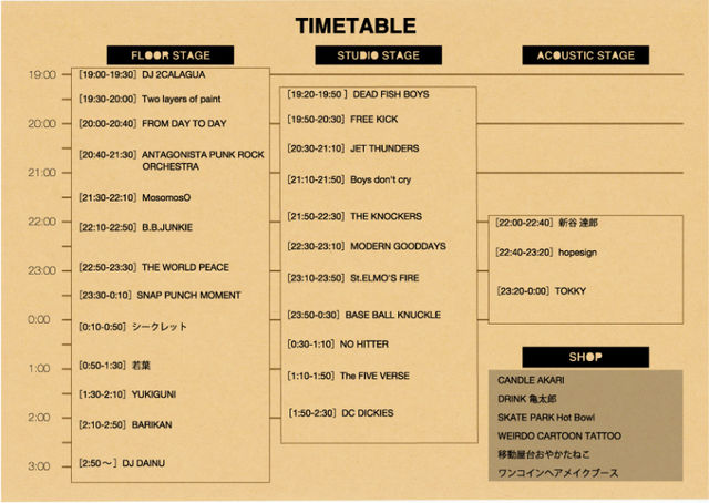 OPEN and START 19:00 TICKET:adv,1000(door,1500)
