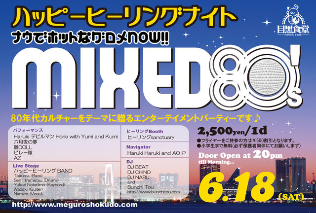 今回は、ゲストDJにAFRICAEMOの阿部雄起さんと、HIGH SCHOOL DISCOの島田沙耶さんをゲストに迎え、一段とダンサブルなPartyをお約束します。