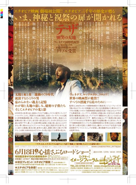 「アムハラ語」コミュの皆さま はじめまして。 エチオピア映画の告知をさせて頂きます。 アフリカ映画界の巨匠、ハイレ・ゲリマ監督作『テザ 慟哭の大地』が6月18日(土)より、シアター・イメージフォーラム(渋谷)にて公開されます!! 本作品がエチオピア映画、劇場初公開となります!! ストーリー 1970年代に医者を志し故国エチオピアを離れ、ドイツに留学していたアンベルブル。しかし、ドイツでの人種差別と、皇帝ハイレ・セラシエの支配から軍事独裁政権に取って代わったエチオピアの現状に失望し、荒涼とした