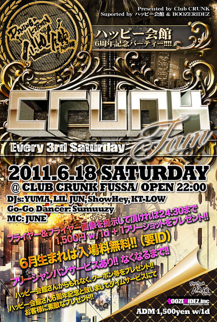 六月から始まるClub CRUNK福生 NEW PARTY "CRUNK FAM"