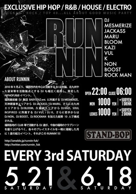 2010年9月より、福岡市内を中心に活動するDJは勿論、北九州や久留米等を活動拠点とするDJも幅広く起用し、発足したHIPHOP,R&Bイベント。