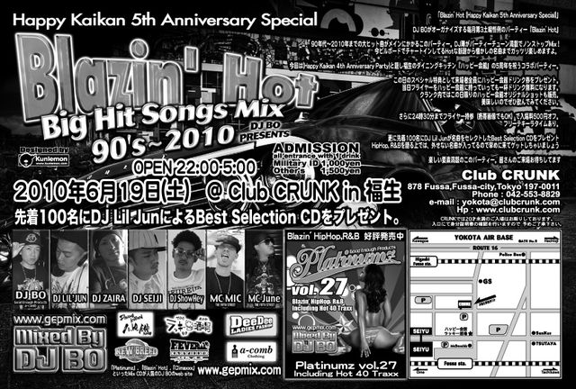 福生Club CRUNKでDJ BOがオーガナイズするParty『Bazin' Hot』
