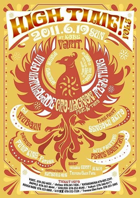 "HIGH TIME! vol.3" 2011.06.19 [sun] OPEN 17:00 / CLOSE 23:00 at KOBE VARIT. , Kobe 6500011 神戸市中央区下山手通り2-13-3建創ビルB1F TEL : 078 392 6655 FAX : 078 392 6650 -Ticket- adv.3000円 / door.4000円(1D別) / with flyer. 3500円(1D別) ぴあ (Pコード) P134-964 / ローソンチケット L51763 / e+ http://eplus.jp (全て04/19発売) 20歳以下は1500円で入場 (チェルシー店頭にて身分証明書提示の上購入可能 ※ 30人限定・ドリンク別) LIVE WILD MARMALADE http://www.wildmarmalade.com/ The Buddhas htt