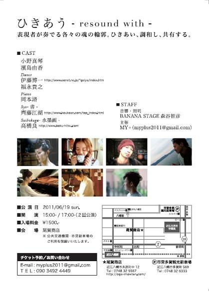 スペースお借り致します。 ◆バレエとストリートダンス、ピアノ、書、水墨画のライブイベント ◎日時・6月19日(日) ◎時間・15:00〜16:30 ・17:00〜18:30 (2回公演) ◎会場・尾賀商店 [滋賀県近江八幡市永原町中12 tel:0748-32-5567 http://oga-showten.com/] ◎入場料・1500円 ◎出演メンバー ◆バレエ MY+ (小野真琴、濱島由香) ◆ダンス 伊藤博一、福永貴之 ◆ピアノ 岡本渚 ◆書 齊藤江湖 ◆水墨画 高橋良 ◎スタッフ 音響・照明 BANANA STAGE 森谷智彦 ◎主催 MY+