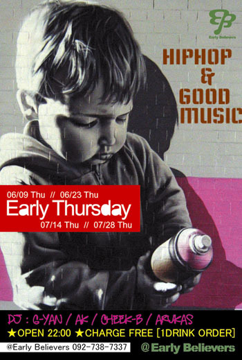 【HIPHOP/R&B/GOOD MUSIC】 *2ND & 4TH THURSDAY PROGRAM* OPEN 22:00 FEE:FREE(1DRINK ORDER) DJ: G-YAN(CORN RECORD) / ARUKAS(OTOMONCHAK) / CHEEK-BEATZ / AK / ...