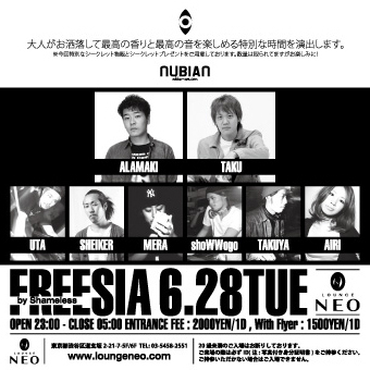 管理人様告知失礼します! アロマキャンドルを使い、最高の音で、みんなに笑顔を。 昨年末開催された第1回目は、Lounge Neoにて450人近くの集客を集めました! そして今回FREESIAが6/28(火)に盛大に開催されます!! 本当に間違いないイベントなんで是非皆様のご来場お待ちしてます!! -------------------------------------------------------------------------------------------------------------------------------- メッセージを頂ければ、ゲスト料金1000円にてご案内させて頂きます! 代表者名と人数添え