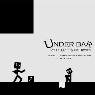 2011.07.15<Fri> @orb under bar sp feat DJ Takeuchi 22:00 open guest DJ Takeuchi <trigger,Kokura> DJ...IWA,Mitsu door...1500yen w1d 今月開催のdeep tech,minimal night!!! ゲストDJには北九州 TRIGGER主催のTakeuchi。落ち着いたストイックなトラックからmadなdeep techまでしっかりとしたミックスワークで紡いでいくクーーールなDJです!迎え撃つ長崎勢はLOVE PARADEよりミスター渋センIWA!! そしてレギュラーのMitsu でお送りします。 まさに納涼ナイト、涼しく踊ろう!!!