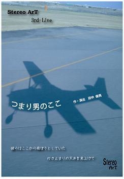 Stereo ArT 3rd-Live 「つまり男のここ」 そろそろ梅雨の時期・・・ ジトジトとした日々がやって参りますが そんな時こそ、こんなお芝居はいかがですか? 『男ジトジト梅雨芝居』 男3人だけのむさくるしいけど、どこか愛らしい そんなStereo ArTの新作公演をご案内します! ■■■ ■■■ ■■■ Stereo ArT 3rd-Live 「つまり男のここ」 ー彼らはここから飛ぼうとしていた 行き止まりの天井を見上げてー 【作・演出】 田中俊亮 【出演】 山口裕嗣(F's Company) 渡邉享介(劇団ヒロシ軍) 田中俊亮