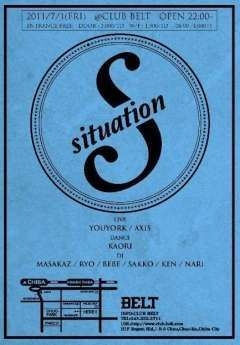 管理人様、告知失礼します。 千葉BELTでお馴染みのこのイベント!泥酔者続出のParty!!! 今月は1日ということで7月の最初からお酒を飲みながら クラブで過ごすのはいかがでしょうか? なんと!24:00までに入場すれば1000円!!! DJはもはや説明不要!DJ MASAKAZ!! LIVEにはYOUYORK!! 上がります!! 2011/7/1(FRI) 『SITUATION』 ENTRANCE FEE DOOR:¥2,000/1D W/F:¥1,500/1D 〜24:00 ¥1,000!! OPEN 22:00- LIVE: YOUYORK AXIS DANCE: KAORI DJ: MASAKAZ RYO BEBE