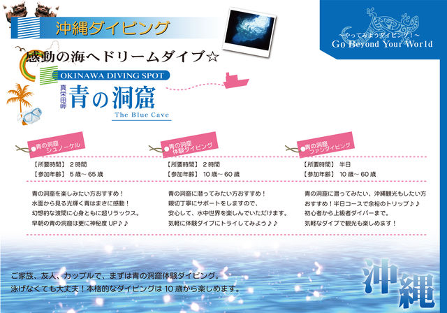 ━━━━━━━━━━━━━━━━━━━━━━━━━━━━━━━━━ ★ DIVING ☆ 沖縄本島 ★ 青の洞窟 ☆ DIVING ★ 沖縄本島 ☆ ━━━━━━━━━━━━━━━━━━━━━━━━━━━━━━━━━ 関西ダイバーズ倶楽部メンバー皆さまへ 沖縄本島ダイビングトリップのご案内です♪♪ ◆◆-日程------◆ IN/7月3日(日) OUT/7月7日 4泊5日 ※2泊3日、3泊4日などでの現地合流リクエストもOKです♪ ◆◆-ダイビングポイント------◆ 目的地:沖縄本島 恩納村エリア 【真栄田岬