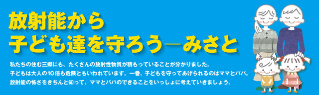 放射能から 子供を守ろう 署名 (三郷) http://www.infopara.com/ ------------------------------------------------------------ 「避難区域の拡大を」市民団体=埼玉の小学校1万ベクレル超も http://www.jiji.com/jc/eqa?g=eqa&k=2011070500588 福島第1原発事故を受け、市民団体「子どもたちを放射能から守る福島ネットワーク」など6団体は5日、福島市内に高汚染地域が広がっているとして、避難区域の拡大などを求める声明を発表した。 6団体は6月下旬、神戸大大学院の山内知也教授(放射線工学)の協力で、福島市内で