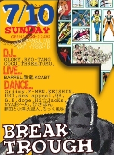 管理人様、告知失礼致します。 不適切な場合、お手数おかけ致しますが削除願います。 今週日曜日!! CHIBA BELTでダンスイベント!!!!!!!!!!! ダンスを観るのもよし、DJ TIMEに思いっきり踊るのもよし!!! ダンサーでなくても楽しめるイベントなので、みなさん是非遊びにきてください♪ 2011,7/10(SUN) BREAK THROUGH @CHIBA BELT OPEN 15:00〜 22:00 ENTRANCE FEE ADV:2000/1D WF :1500/1D DJ/ GLORY RYO-TANG COCO THREE TOMO DANCE/ Hi★JacKs KEISHIN ろっく風味 火星人 藤田と