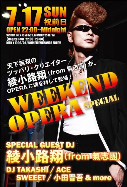 ★★★★★★★★★★★★★★★★★★★★★★★★★★★★★★★★★★★★★★★ 六本木OPERAエントランスにて【DJ スイート】のゲストで【ユウ】と言っていただければ下記ゲスト料金にて入場可能になります! ★★★★★★★★★★★★★★★★★★★★★★★★★★★★★★★★★★★★★★★ ゲストを取らずにこのイベントに入場すると ↓ ■PRICE 男性 3500yen, 女性 2500yen ゲストを取って入場すると ↓ ■GUEST 男性 2000yen/2d,女性 1000/2dになります! なので是非な自分のゲストでご入場くださ
