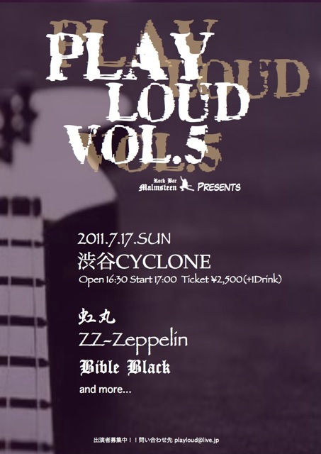 2011年7月17(日)・・(3連休の中日になります) at Shibuya Cyclone 15:30 OPEN 16:00 START 出演 SWEEPER Bible Black 虹丸 ZZ-ZEP 他1組(出演者募集中) タコヤキ係同時募集中 CHARGE ¥2500+1Drink タコヤキ食べ放題 玉寿司出張販売アリ