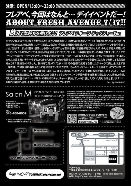 今回は日曜日の真昼間、クラブBELTで昼間のイヘ゛ントをやらせていただきます! まさに週末!昼間っから思いっきりテ゛カイ音楽を聴いて皆様で遊びません!? みんなで遊んで騒いで楽しむイヘ゛ントのフレアベでは、前回より企画させていただいたテキーラ募金は前回沢山の募金が集まりました! このイべントではテキーラやシャンパンを今まで300円でテキーラガールが販売をしてきましたが、今回は300円ではありません!!振る舞いテキーラでもありません!!!! あなたの気持ちでBELTのテキーラを買ってみんなで乾杯してもらえませんか?? 値段