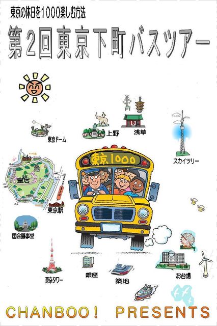 キャンセル待ちとなりました 〓ついに1年4ヶ月振りに復活!!〓 今年もやります大人の遠足第3段 東京1000コミュ激安企画「第3回 東京下町お気軽バスつあー」 好評つき今年は〓パワーUp 大型観光バスをチャーターしちゃいました。 でもあまりコースは変わってないけど 初めて見る方へ 皆で「激安でお気軽に東京下町を回ってみよう」と言う企画です。 最後に東京名物「もんじゃ焼き」を食べに行きたいと思います