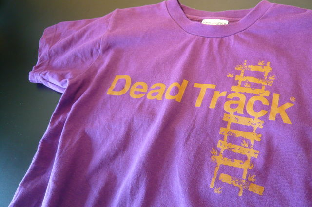 受注生産受付終了。2011/7/8(金)を〆切でした。 たくさんのオファーありがとう! あと少しですがジュンク堂書店さん新宿店6F&池袋7Fにて 在庫がある様なのでもしよかったらのぞいてみてくださいませ。 ---以下は受注生産オファー受付時の告知分となります--- 【廃線T】復刻 2011/7/8(金)23:59を〆切とさせていただきます。 夏、それは入道雲と廃線が気になる季節 胸には「廃」=Dead&「線」=Trackの文字&線路+草を 背には水平線に消えゆく草ボーボー線路を配した color*5 ライト杢グレー/オレンジ/ブラック/ジャパンブ