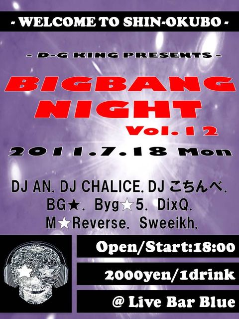 びっぺんによるびっぺんのための一大びっべんイベント『BB NIGHT』が 梅雨明け→夏の訪れとともに遂に聖地★新大久保に上陸 今夏最初の連休は、新大久保『BLUE』でRocks the Night ショーケースもあります魅せます 記念すべき@BLUE第一弾に登場してくれるのは 【BG★】・・・http://mixi.jp/view_community.pl?id=5472125 【Byg☆5】・・・http://mixi.jp/view_community.pl?id=5563397 【DixQ】・・・http://mixi.jp/view_community.pl?id=5159498 【M☆