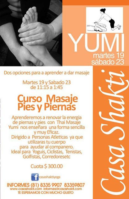 疲れた脚・膝・足をマッサージでリラックスさせましょう!! 簡単で効果のあるマッサージコースを行います。どうぞお気軽にご参加ください。スポーツ好きにもおすすめです! <コース内容> 足のマッサージ 足首のストレッチ 脚のマッサージ、ストレッチ 股関節のストレッチ 膝のストレッチ 7月19 日 (火) 11:15-13:45 7月23 日 (土) 11:15-13:45 ※同じ内容を2回行います。 詳細はこちらをご覧ください。 http://yoga4aw.blog32.fc2.com/