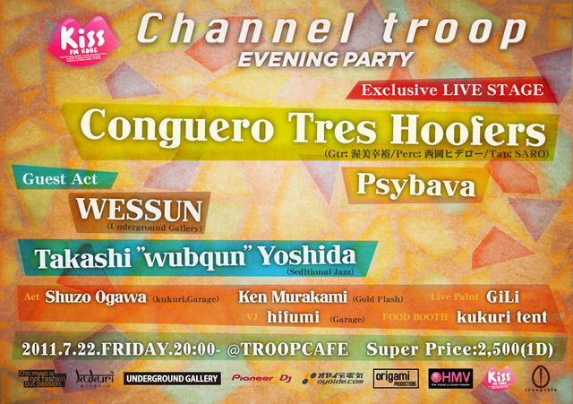 7/22(金)の「Channel troop EVENING PARTY」には、今年のフジロック'11にも出演が決まったConguero Tres Hoofersのスペシャルライブステージが決定した!!!