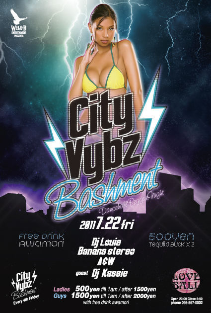 ※管理人様、告知失礼します※ /WILD-B-SOUNDZ Entartainment Presents/ -Every 4th friday Reggae Dancehall- 【CITY VYBZ BASHMENT】 7/22(fri)2011 Music by: Dj Louie Banana Stereo A&W Guest Dj DJ Kassie Mic:POPO JOHNEY and more......... ADM: Ladies: 500yen till 1am /after 1500yen Guys:1500yen till 1am /after 2000yen (with Free awamori) special drink:Tequila Buck x2:500yen OPEN:11pm close:5am PLACE:LOVE BALL(098-867-0002)    那覇市久茂地2−13−14ヨーロピア
